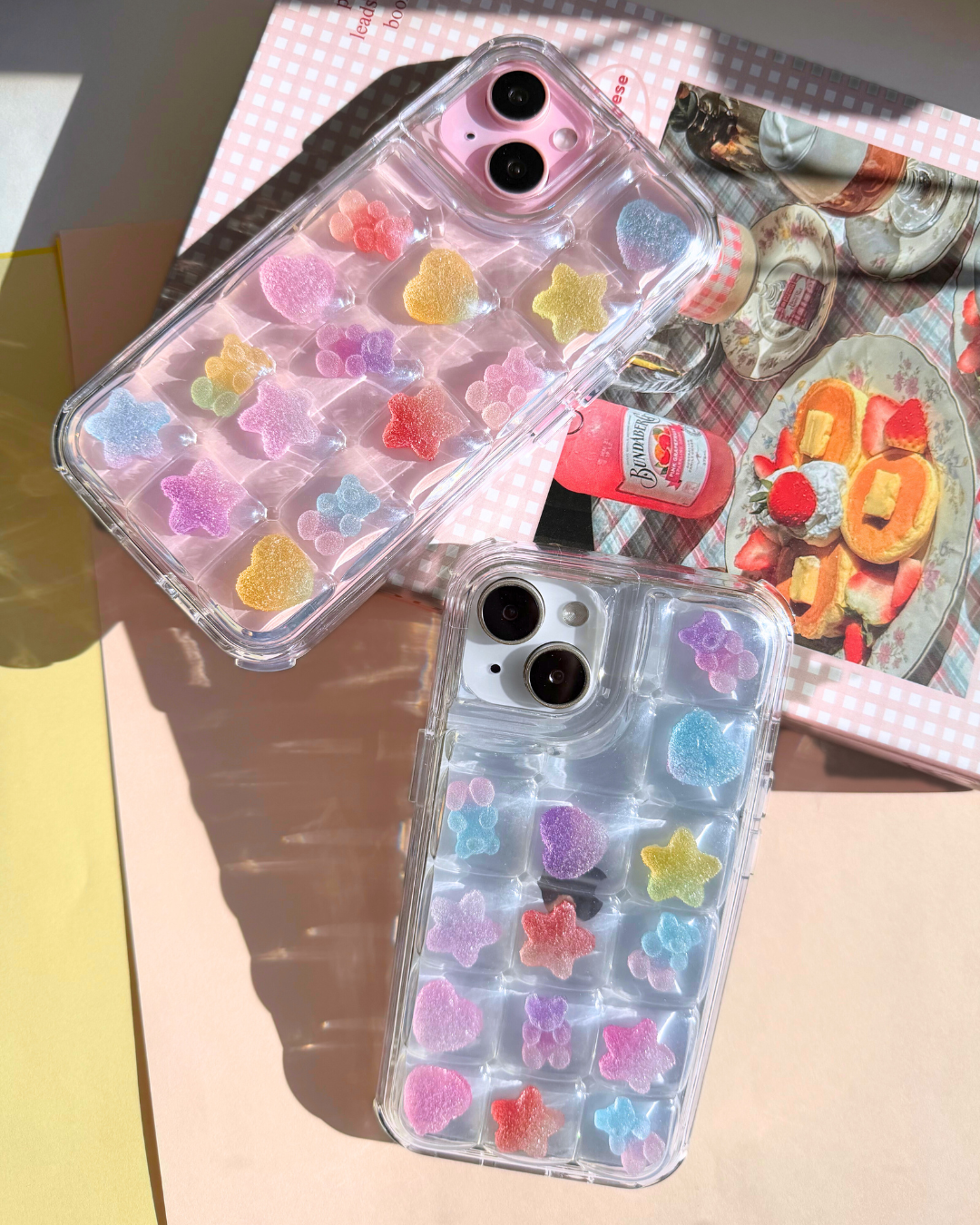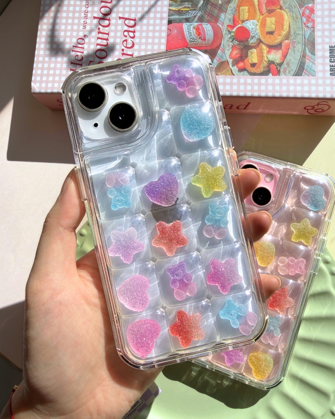 Each piece shimmers with soft pastel hues, adding a magical candy-like glow to your phone case.