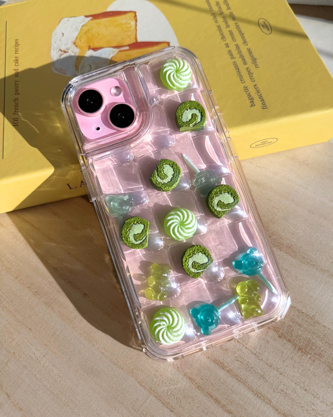 A dreamy green mix made just for matcha fans. This set features a matcha swiss roll, sugary candies, gummy bears, and a tiny lollipop. Perfect for adding a sweet pop of green to your Puff Case.