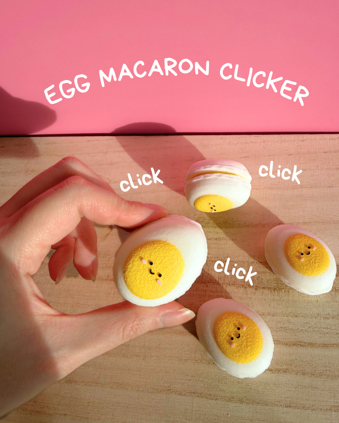 This egg-shaped macaron clicker features a soft pastel shell with a playful egg center, making every press extra fun.